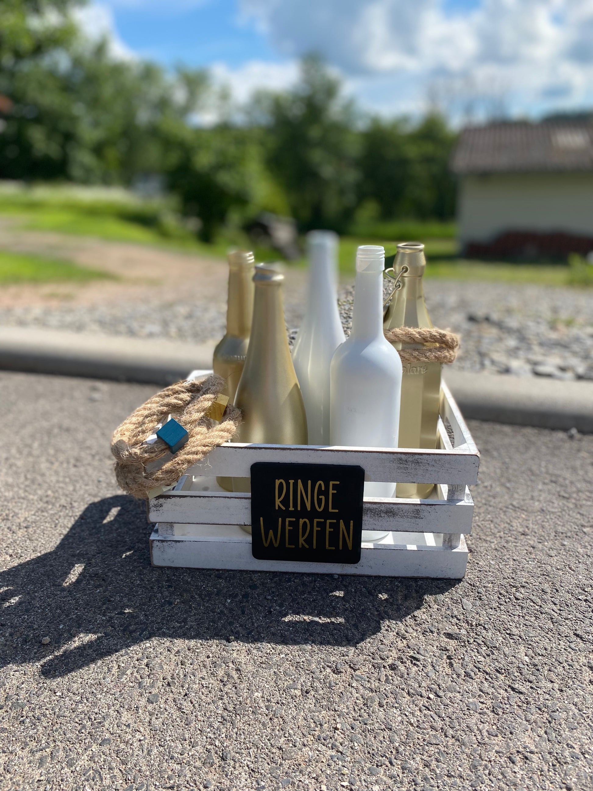 Das Spiel besteht aus 5 Glasflaschen, sowie den Wurfringen.